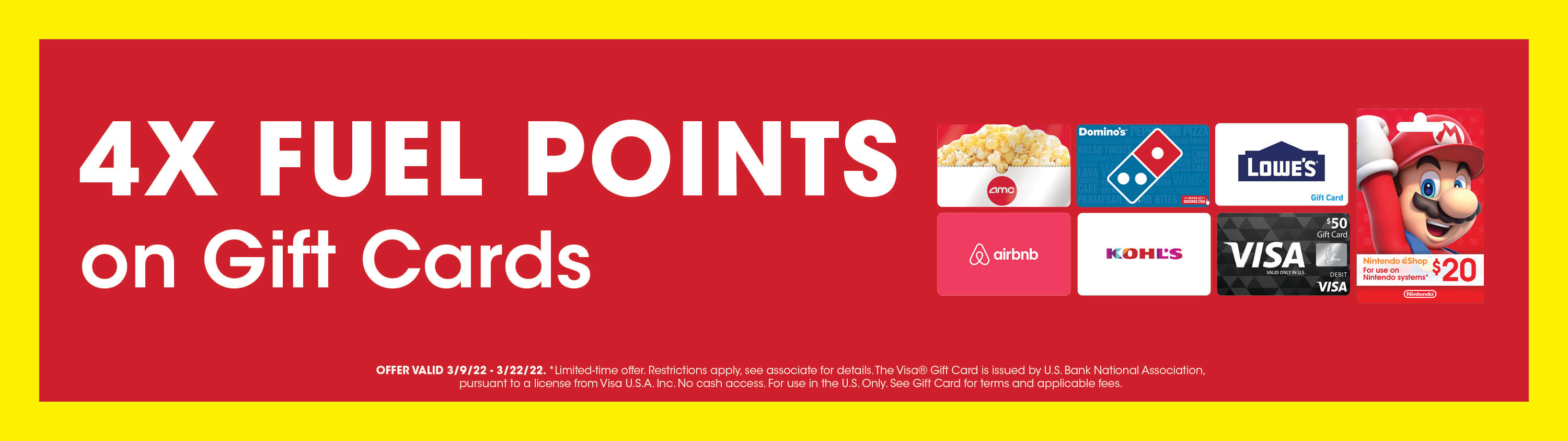 . Buy Gift Cards Today. The Kroger Family of Companies Gift Card represents a prepayment for goods and fuel available at Kroger Barclay Jewelers Bakers City Market Copps Dillons Food 4 Less Foods Co Fred Meyer Fred Meyer Jewelers Frys Food and Drug Gerbes JayC King Soopers Littman Jewelers Marianos Metro Market Owens Pay Less Supermarkets Pick n Save QFC Ralphs and. Up to 4 cash back Offer is exclusive to Buckle Credit Card holders enrolled in the Buckle Rewards program.